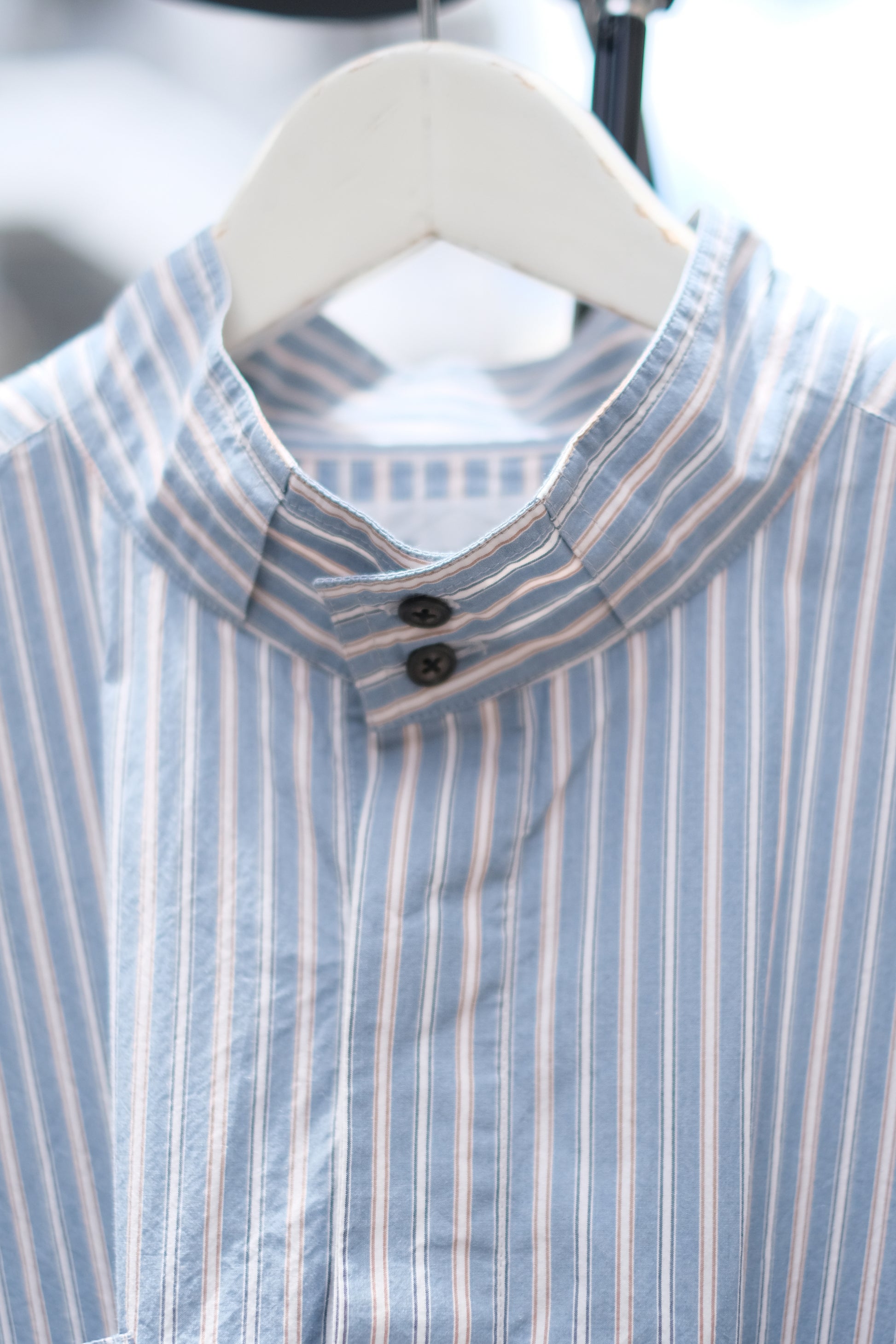 襟はスタンドカラーになっています。裾はボックスタイプです。