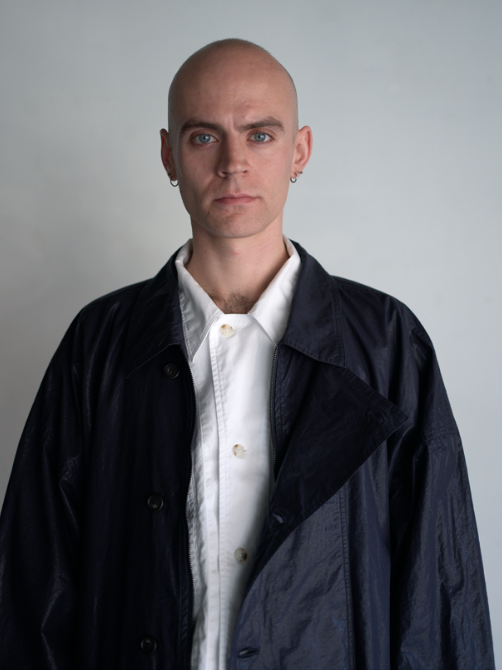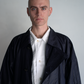 ラメ感のある表地が特徴のコットン生地を使い、裏地のない一枚仕立てでシャツコートを製作。