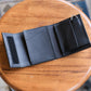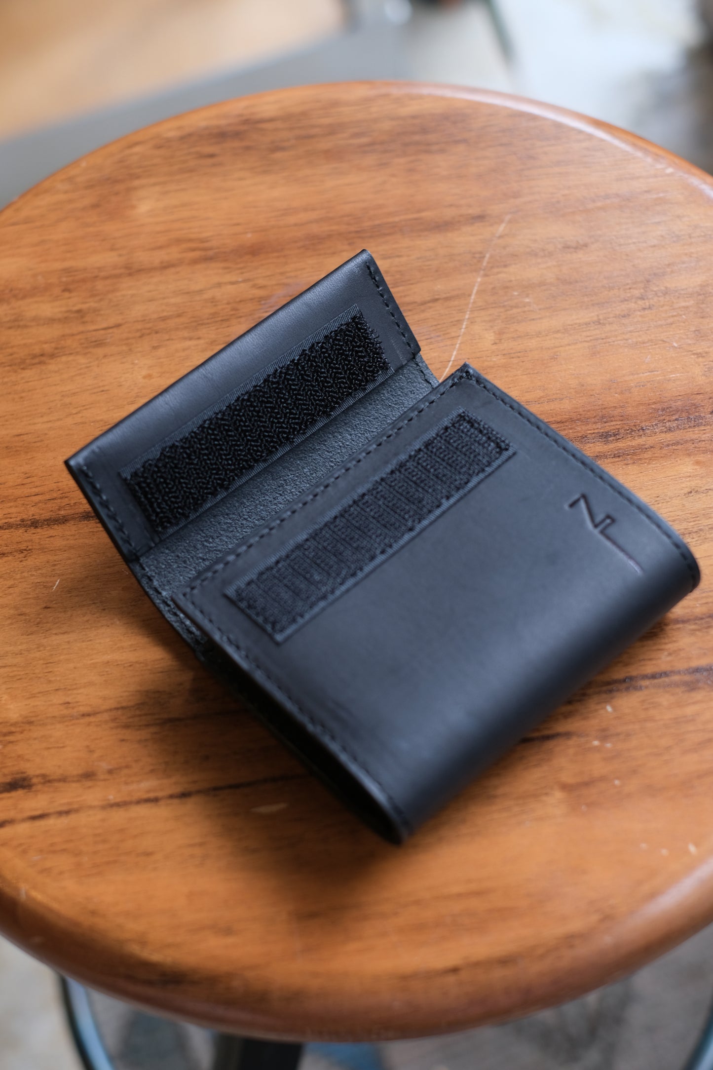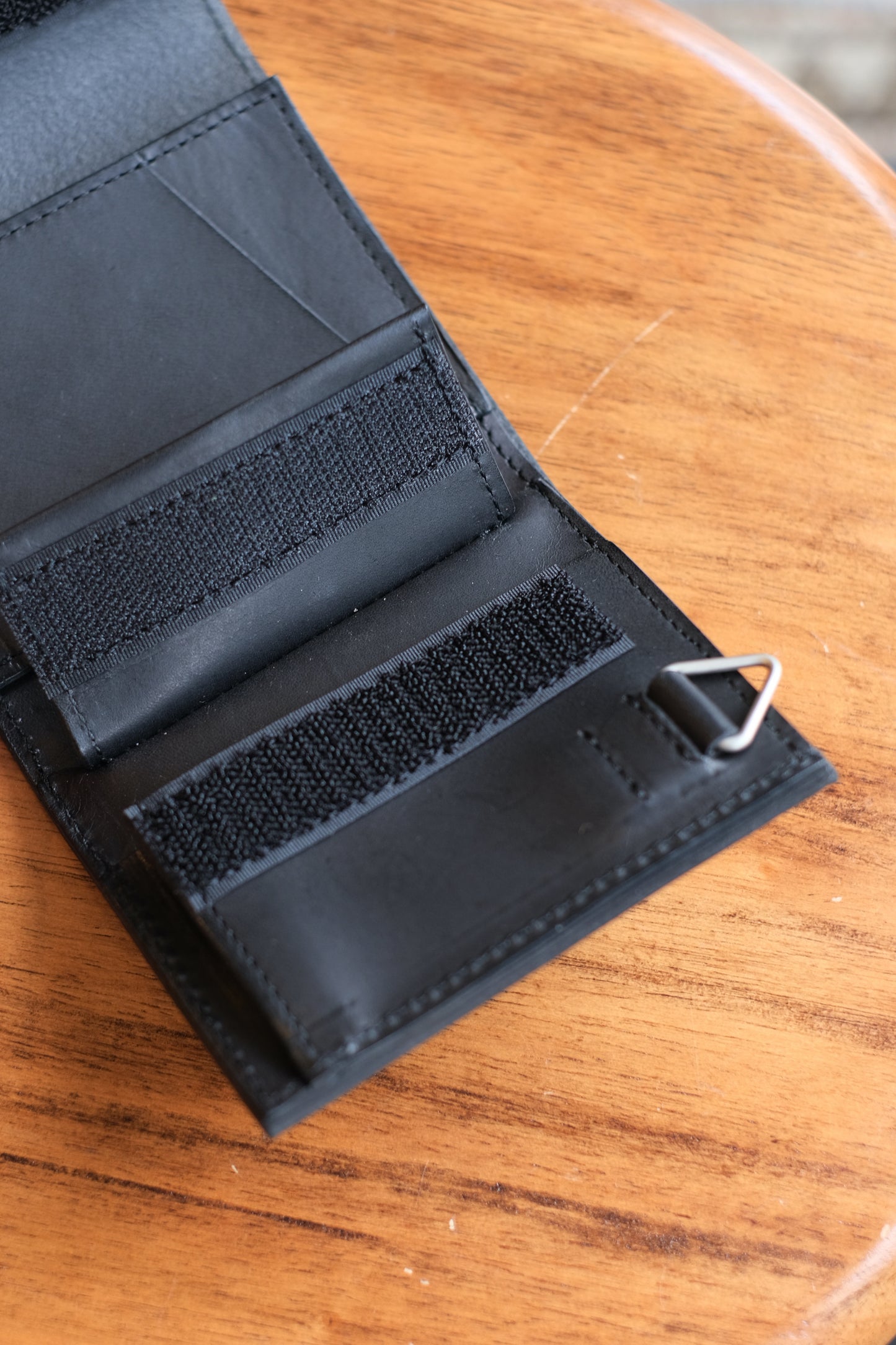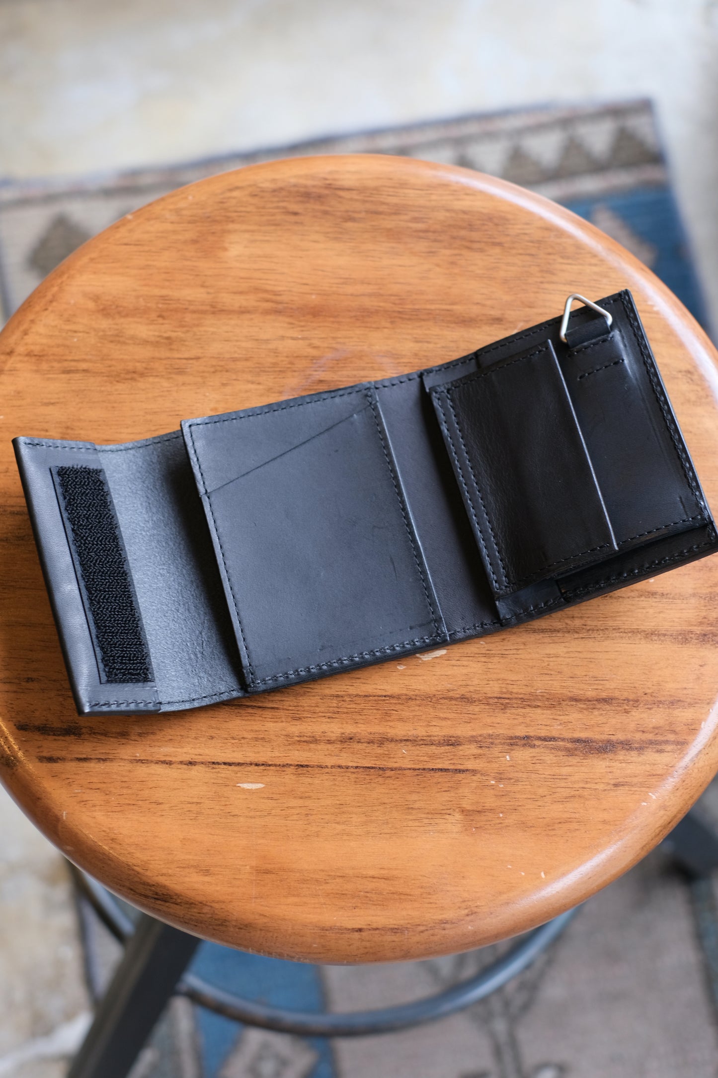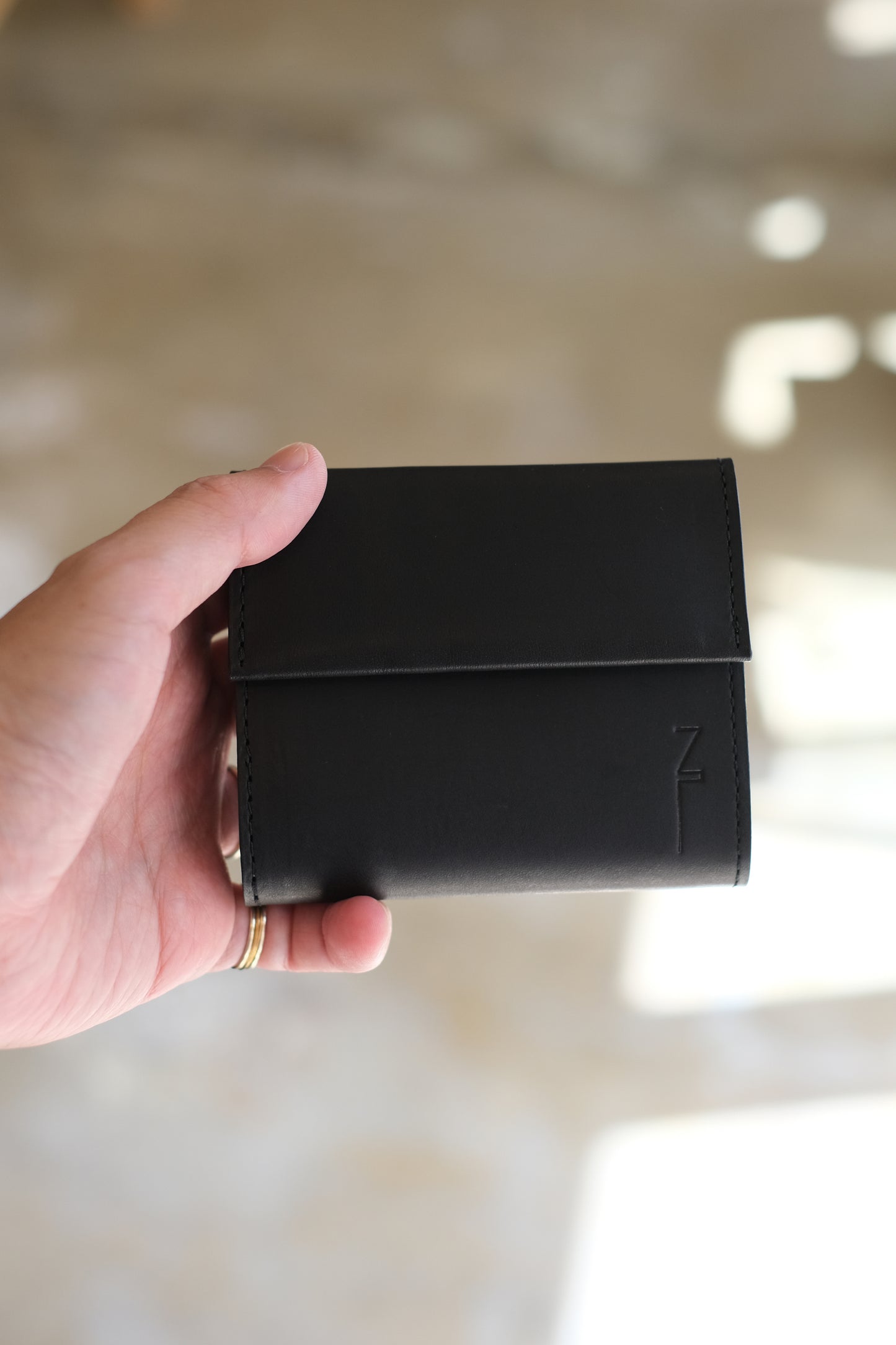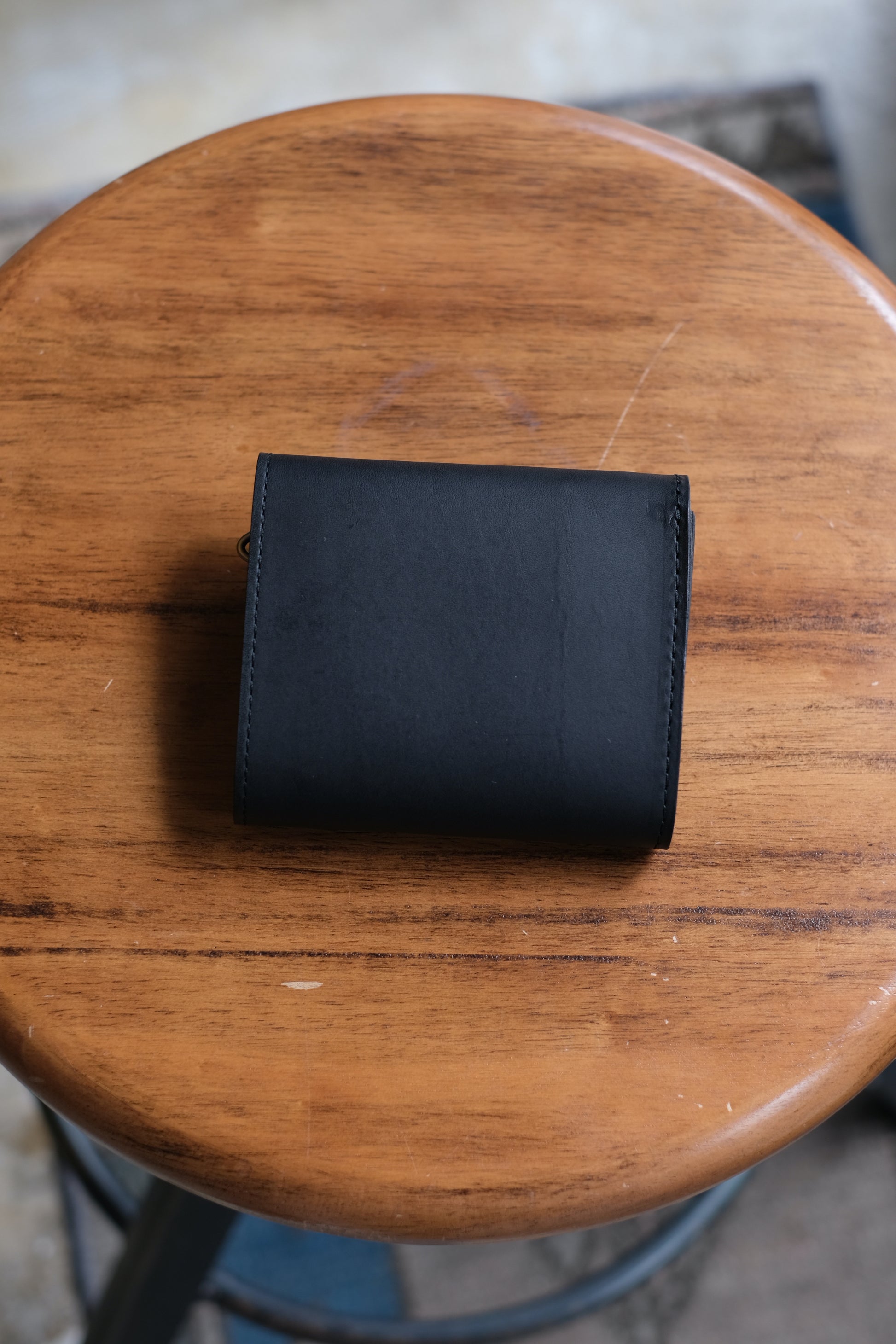 NL's L-shaped wallet, Cyril. It is designed with ease of use in mind, and you can access your bills, coins, and cards just by opening the zipper. What makes it different from other L-shaped wallets is that it has a gusset. This increases the storage capacity for coins and prevents the wallet from becoming too full. There is also a square ring on the bottom side where you can attach a wallet chain. Another feature of this wallet is the aging of the leather, which becomes more comfortable as you use it.