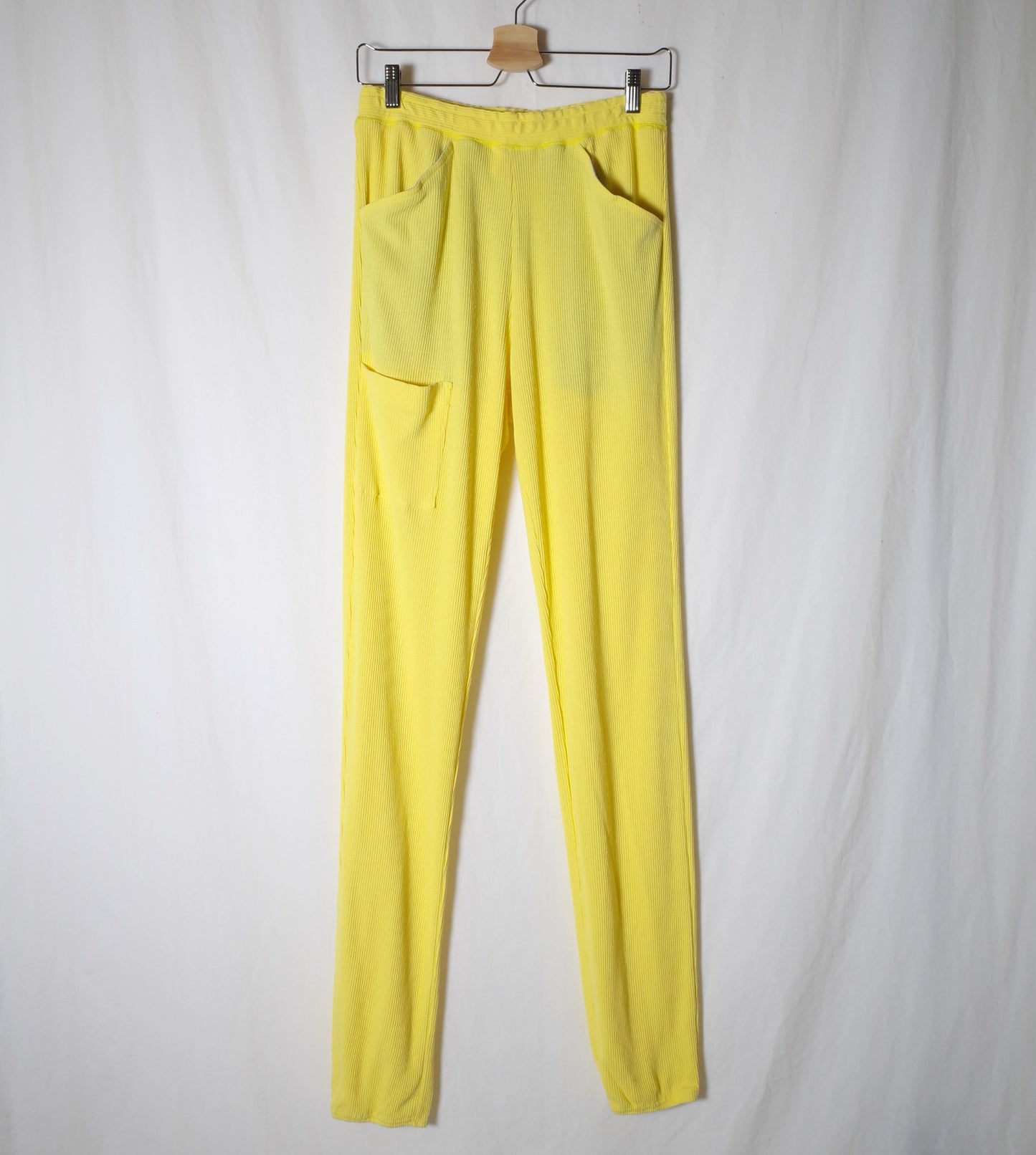 地厚のシルク100%テレコでタイツを製作。 右太腿部分にはパッチポケット。重いものはNGなので、マスクなどを忍ばせて。 冬のインナーアクセントとして活躍する一枚です。