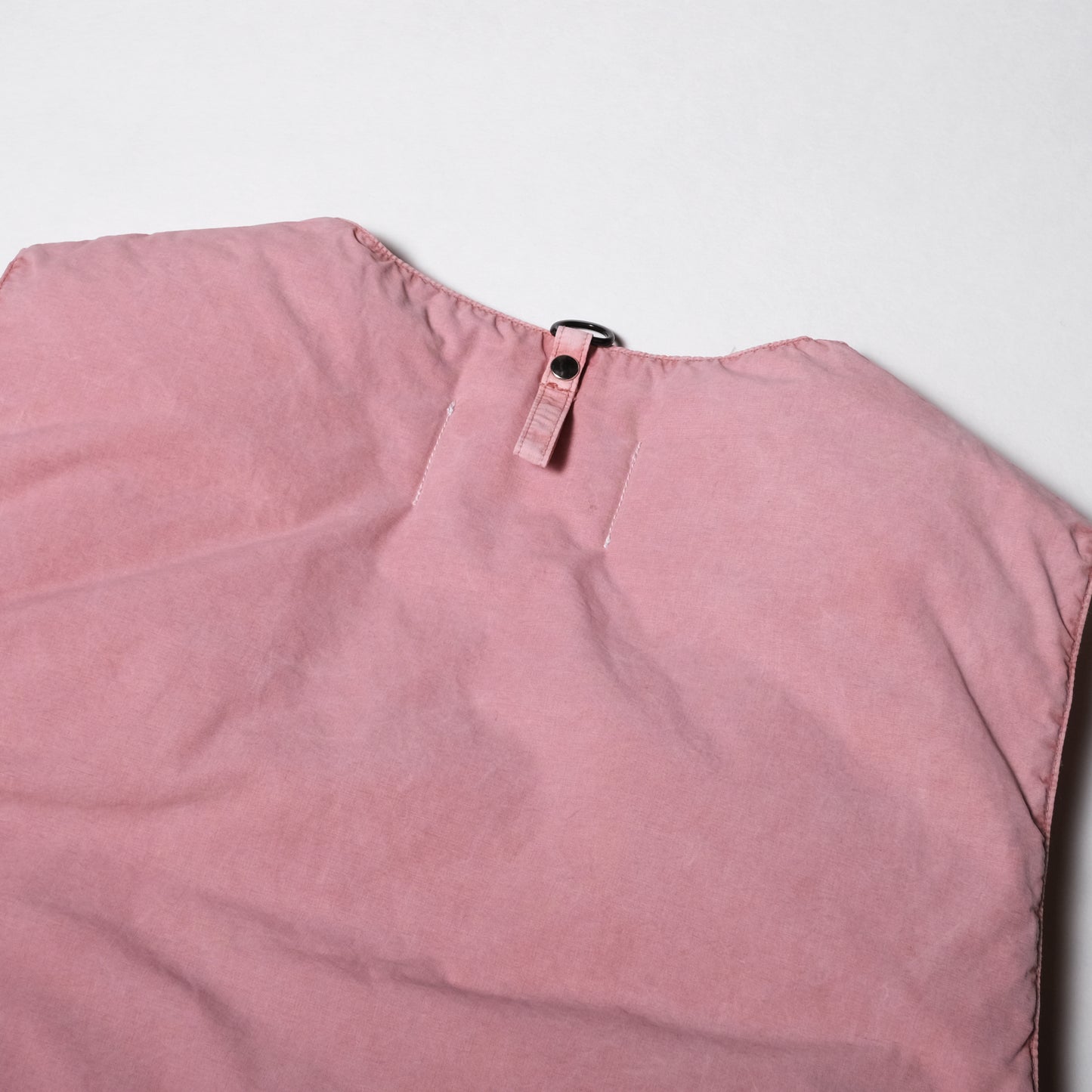 50'sのオーセンティックなフィッシングベストをダウンベストのデザインにアップデー ト。山型の前、後のポケットはそれぞれ別々の収納になっており、物を種別に収納出来る機能性のあるデザインになっています。 先シーズン、ダウンストールなど小物での製品染が実現できたため、今シーズンはダウンベストでの製品染に挑戦しました。 先シーズン同様、染の手法は手染のベンガラ染を採用。岡山県高梁市で銅の鉱山の副産物として使用されている土中の鉄が酸化した顔料を使用したベンガラ染にて、1点1点職人さんによる手染を施しています。表地は、綿ナイロンの混率の素材のため、綿とナイロンの染足の違いにより、奥行きのある色目とムラ感を残した風合いに仕上がっています。 手染めならではのムラ感と奥行きのある佇まいをお楽しみください。