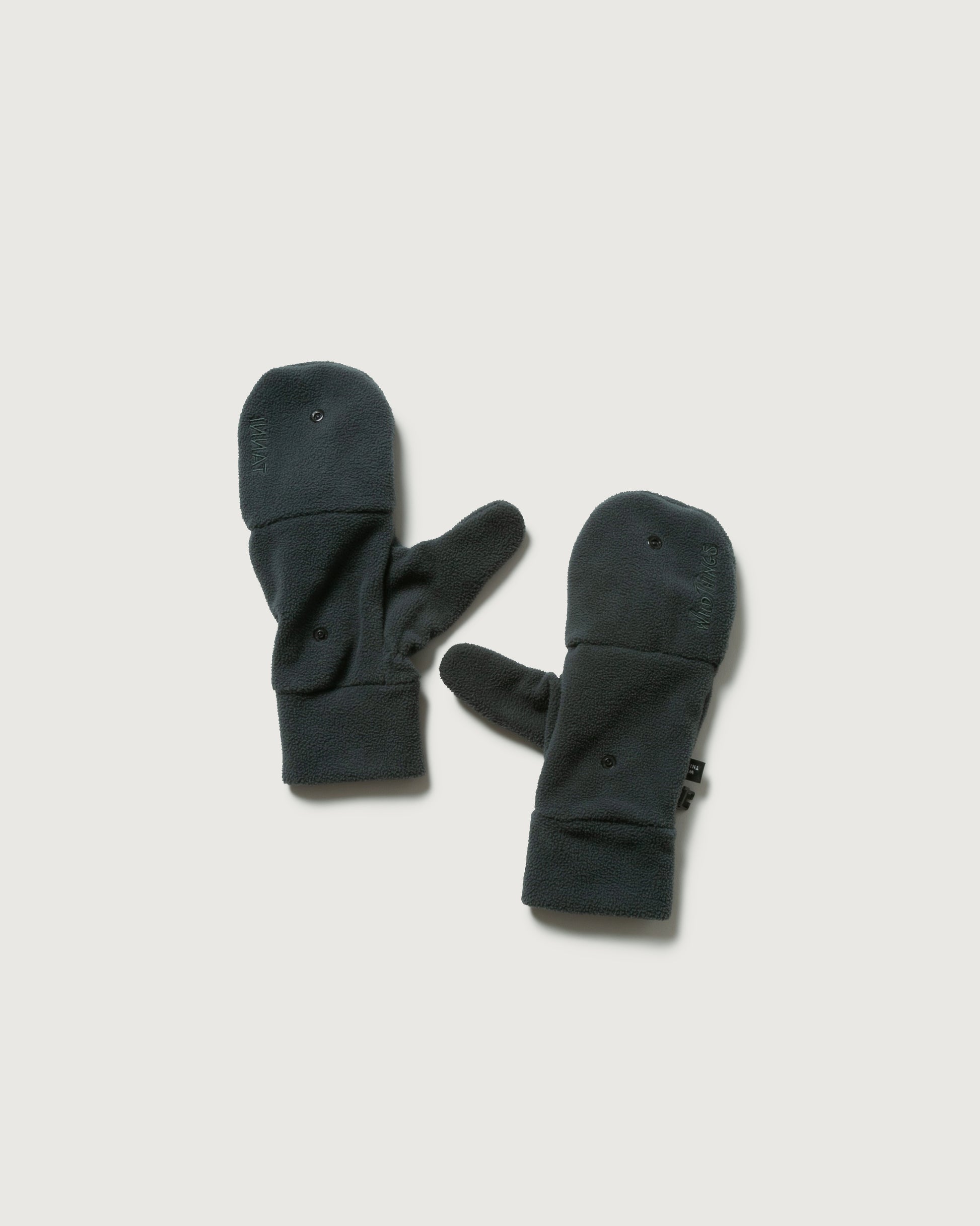 POLARTEC WIND PROを使用したミトン。指先を出した状態とミトンと して使用できる2WAY仕様。POLARTEC Wind Pro素材を使 用することで、高い防寒性と通気性を実現しています。生地 の段階で表面にグラデーションのピグメントプリントを施 し、製品化後にはボールバイオ加工を加えています。製品で 加工を加えることにより、自然なフェード感ある独特な表情 に仕上がっています。