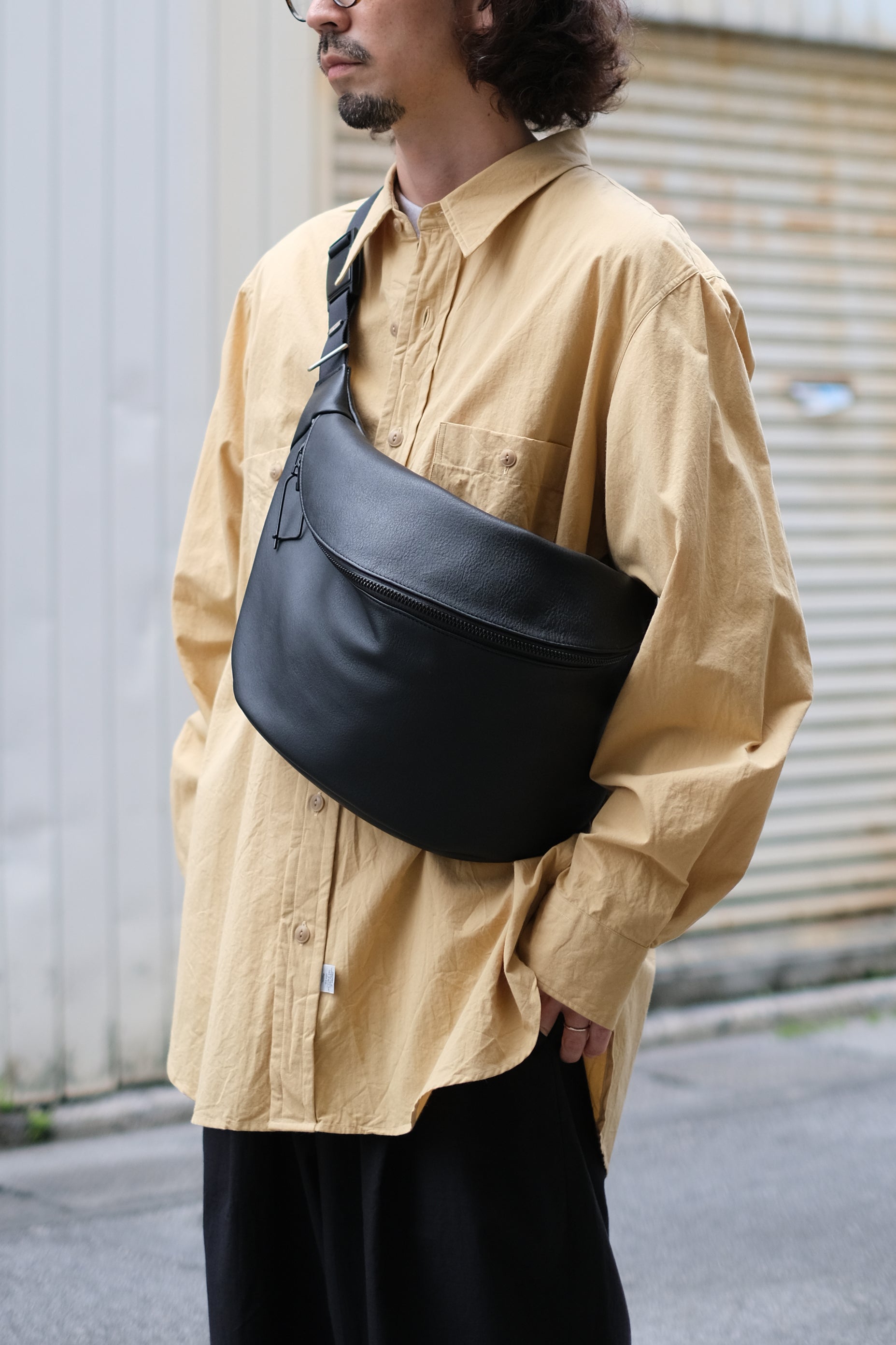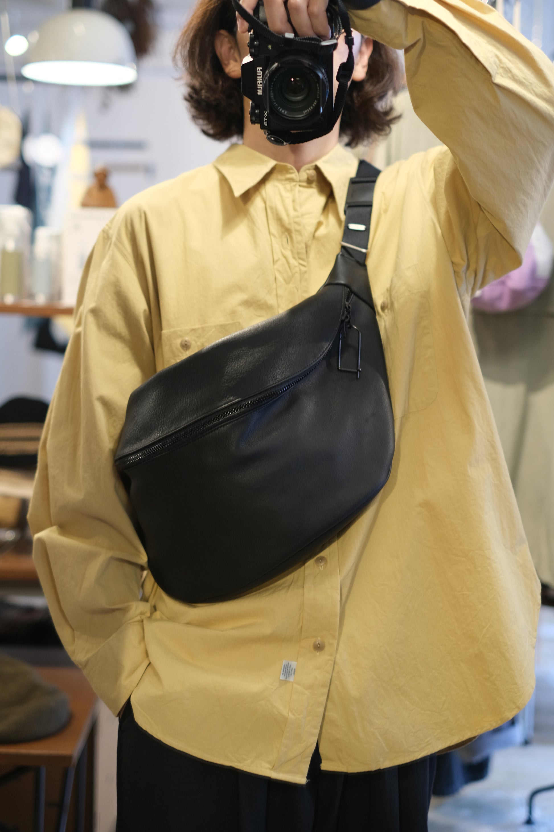 ベジタブルタンニンレザーの買うレザーを使用したボディバッグ。