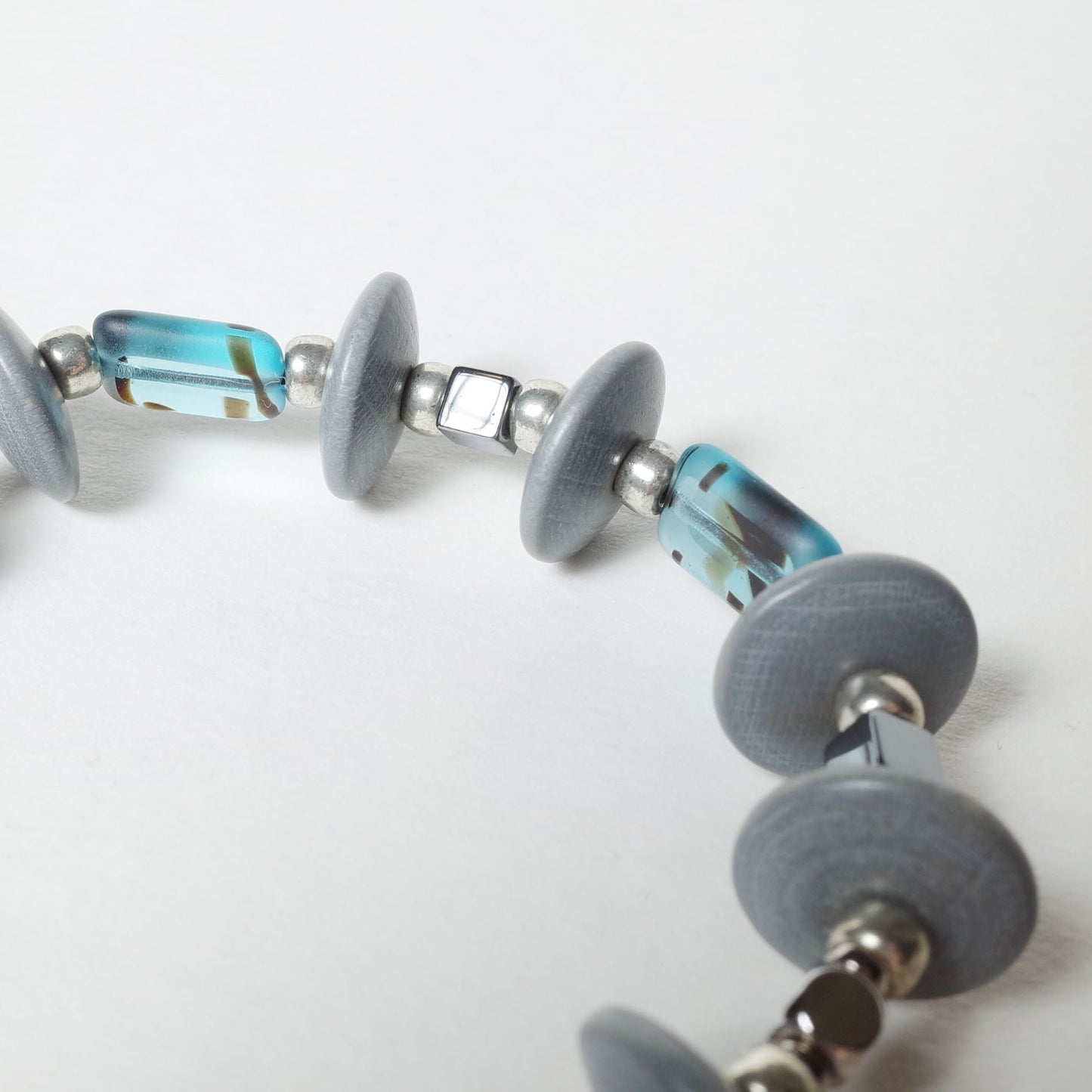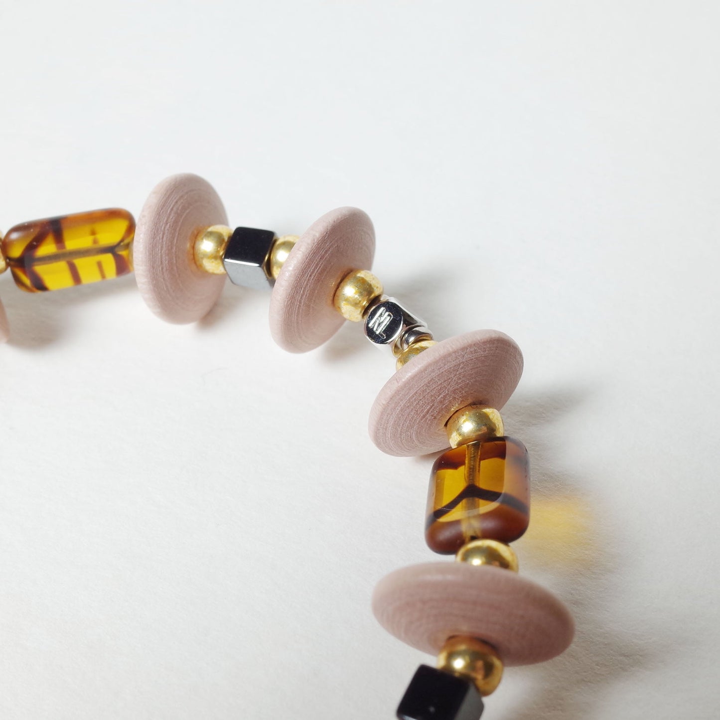 素材:グラス、ウッドビーズ、ブラスビーズ、ヘマタイト