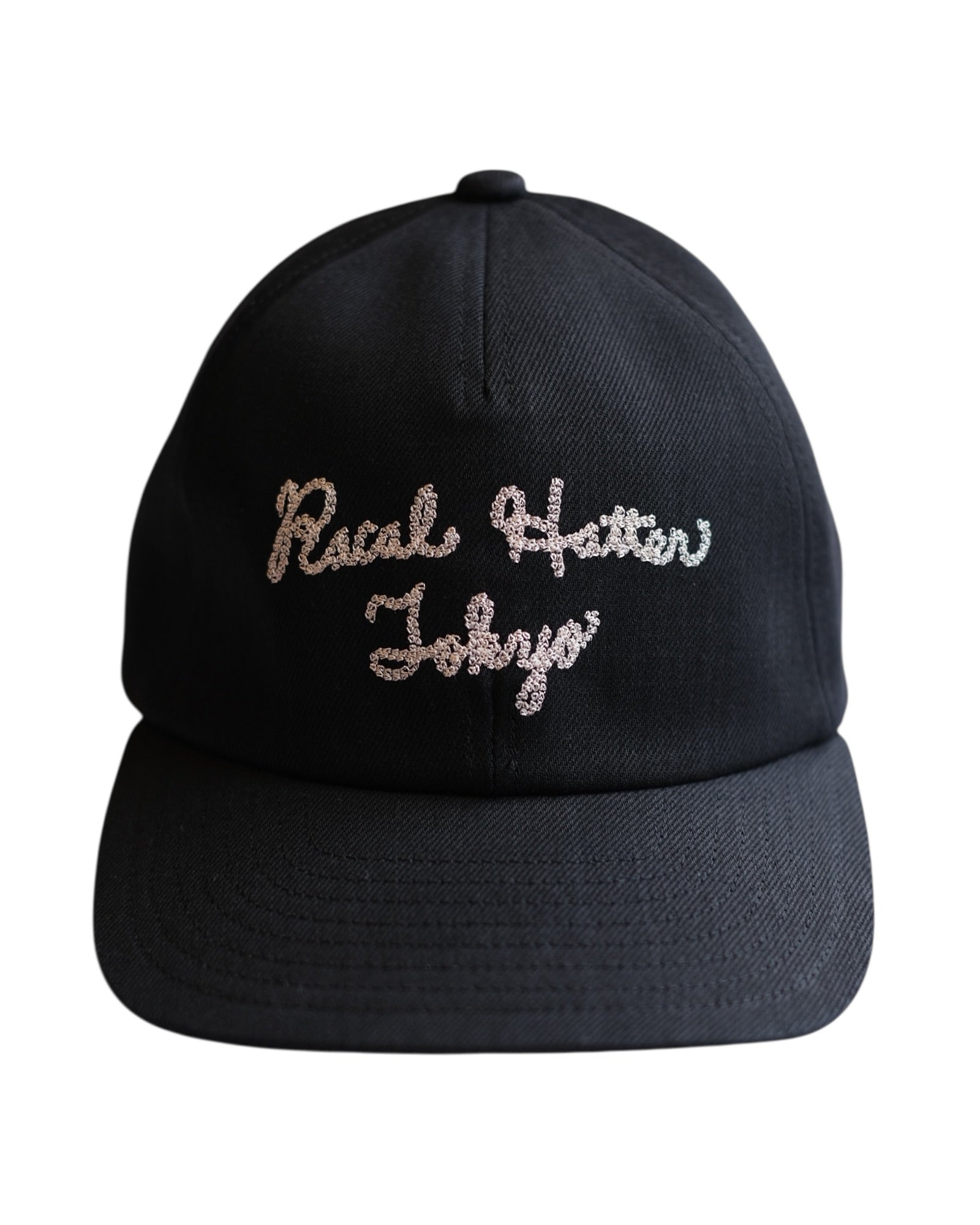 RACALロゴチェーン刺繍を施したライトオンスのデニムキャップ。アメカジの風合いを感じさせてくれるチェーン刺繍とデニムの相性は良く、またオリジナルの型になっているのでフロントパネルは6枚風の5枚で刺繍部分にハギの凹凸が出ないように工夫されています。