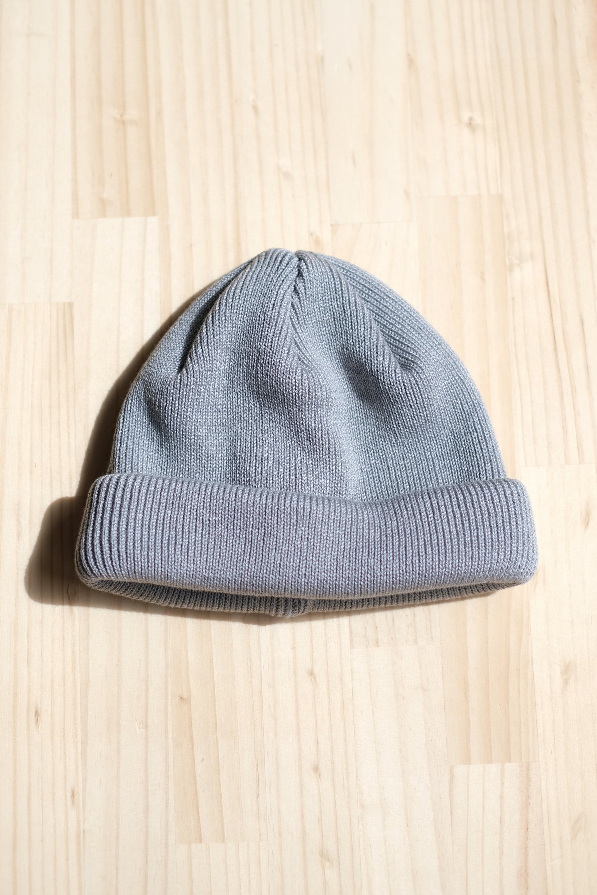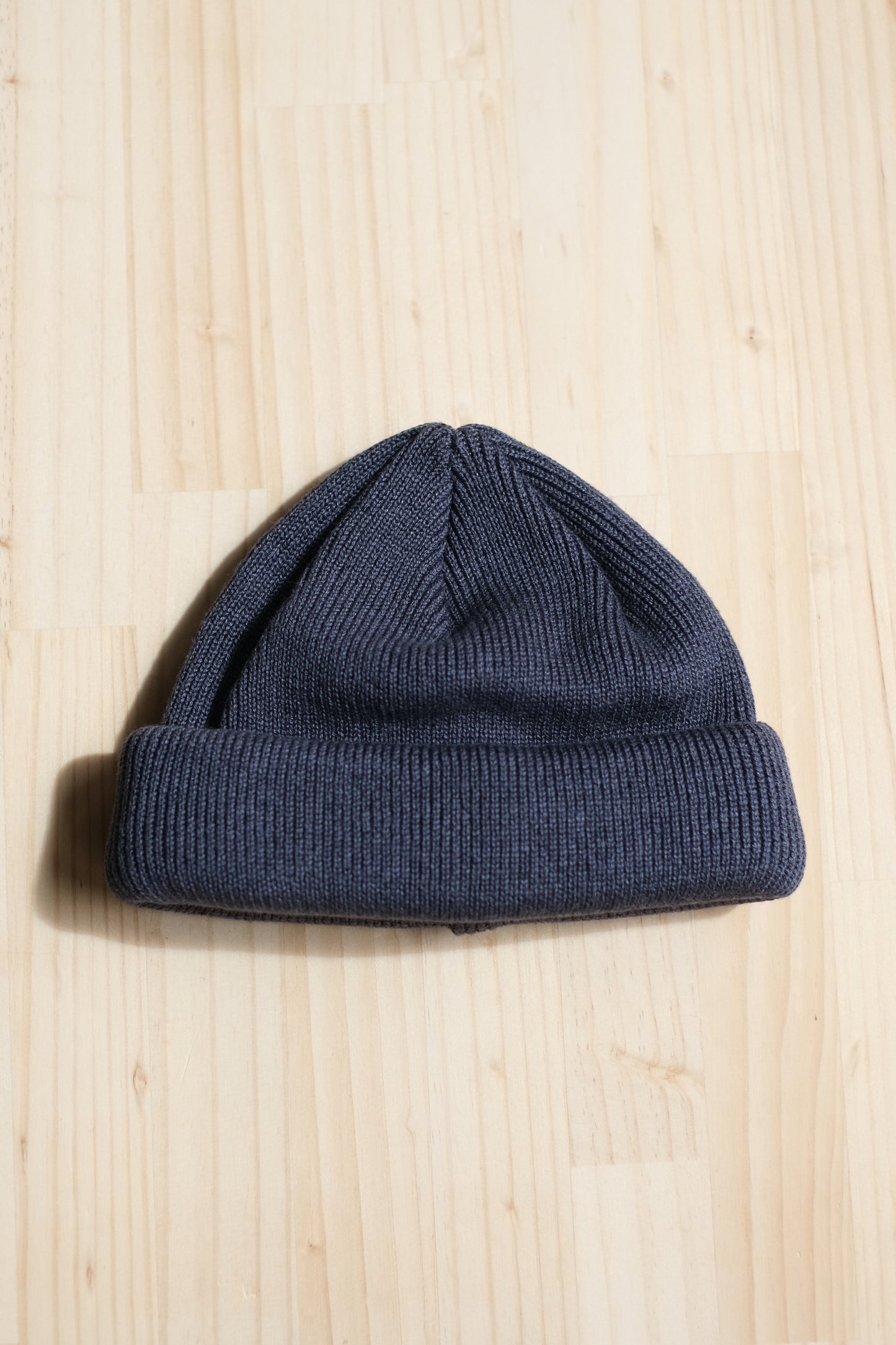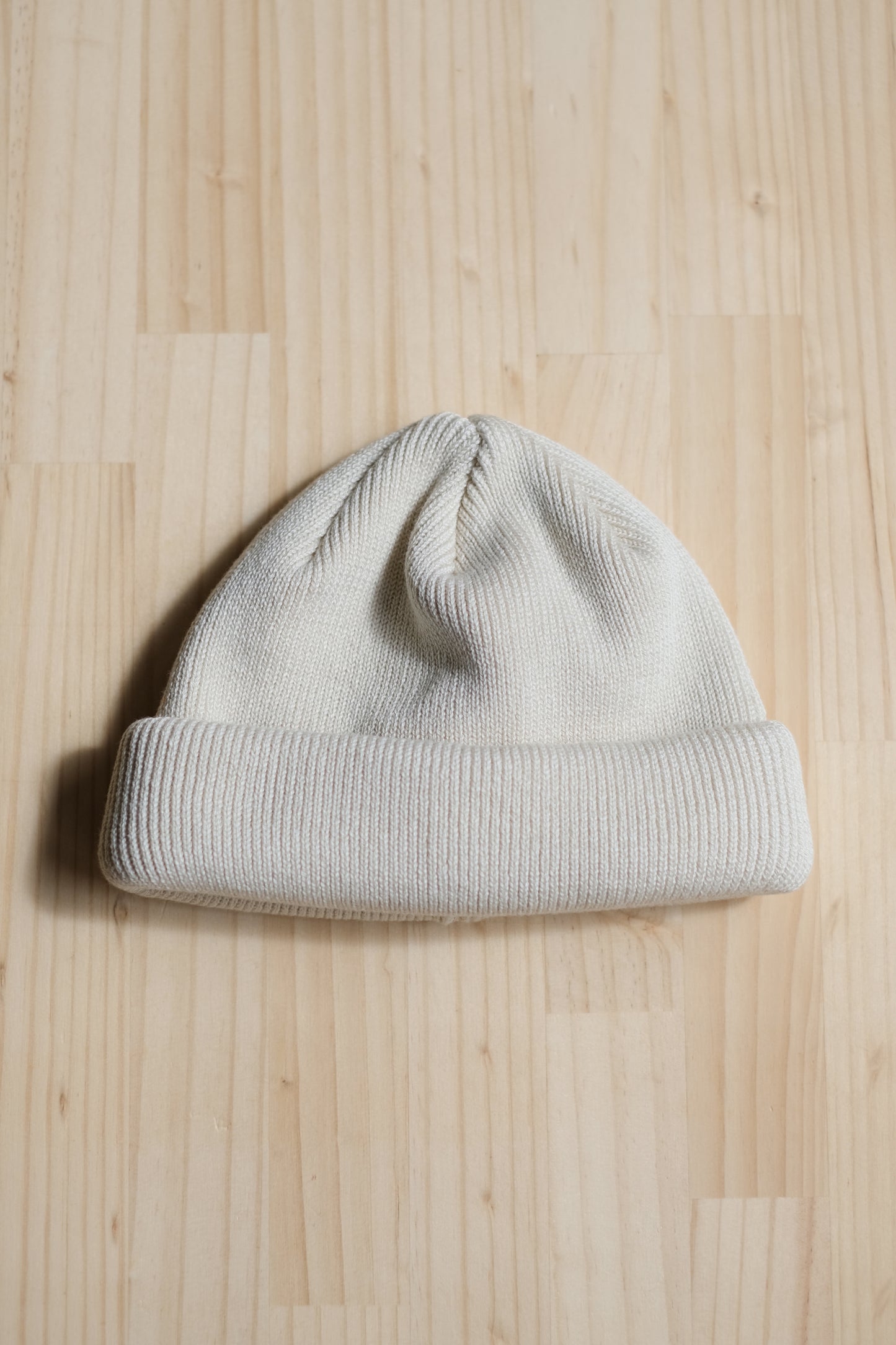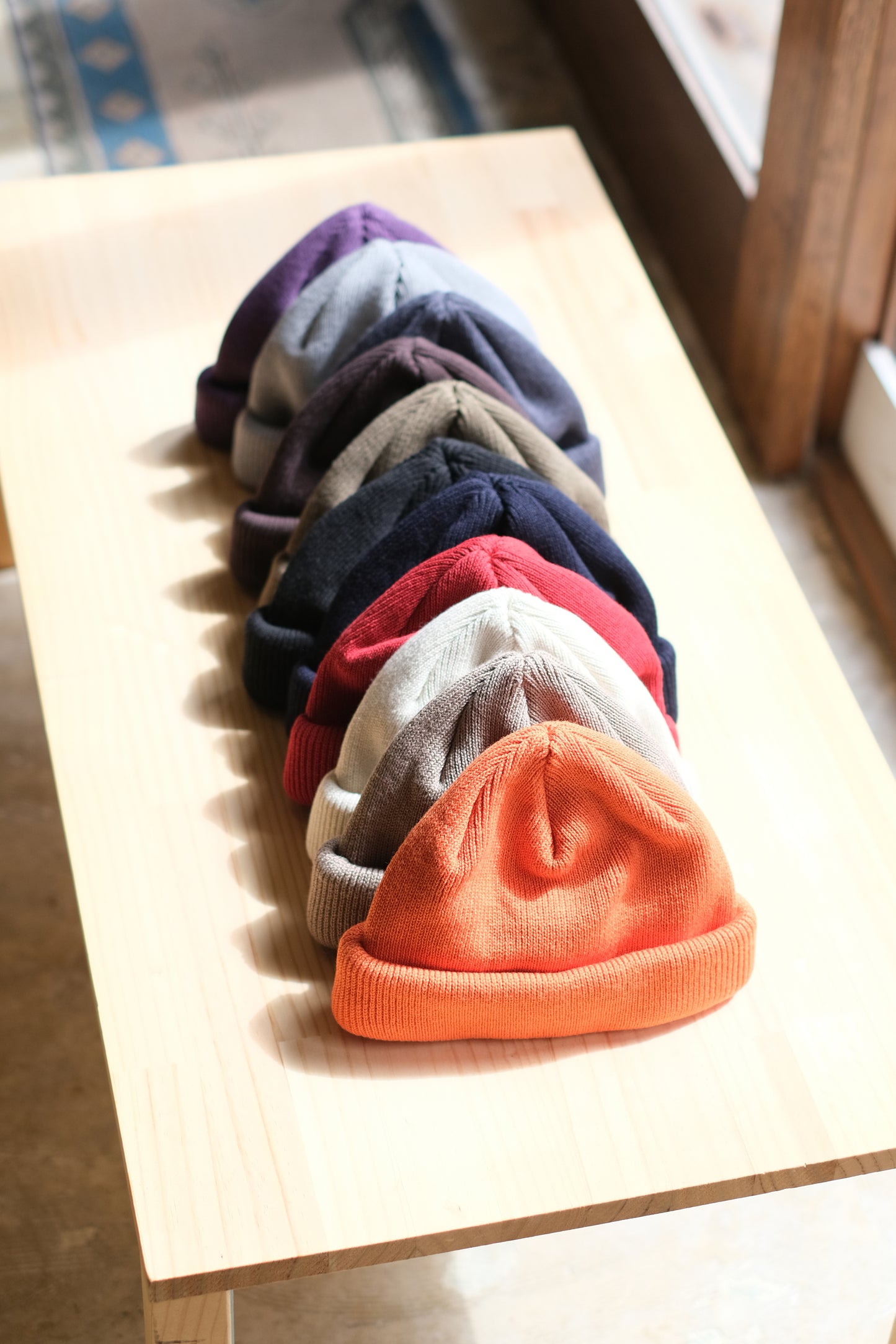 定番のロールニットキャップ。 通年使えるコットン/アクリルのややコシのあるニットです。ロール部分はしつけ糸で留められていますが、お好みでしつけ糸を切って着用もいただけます。