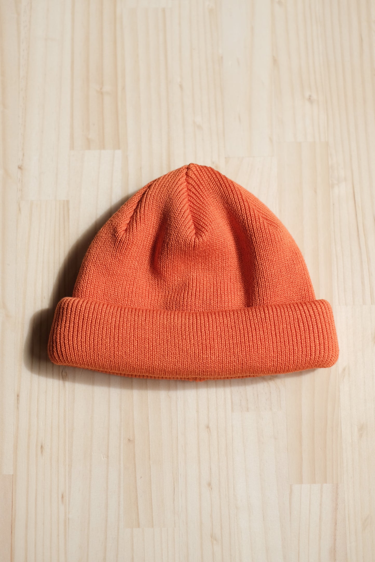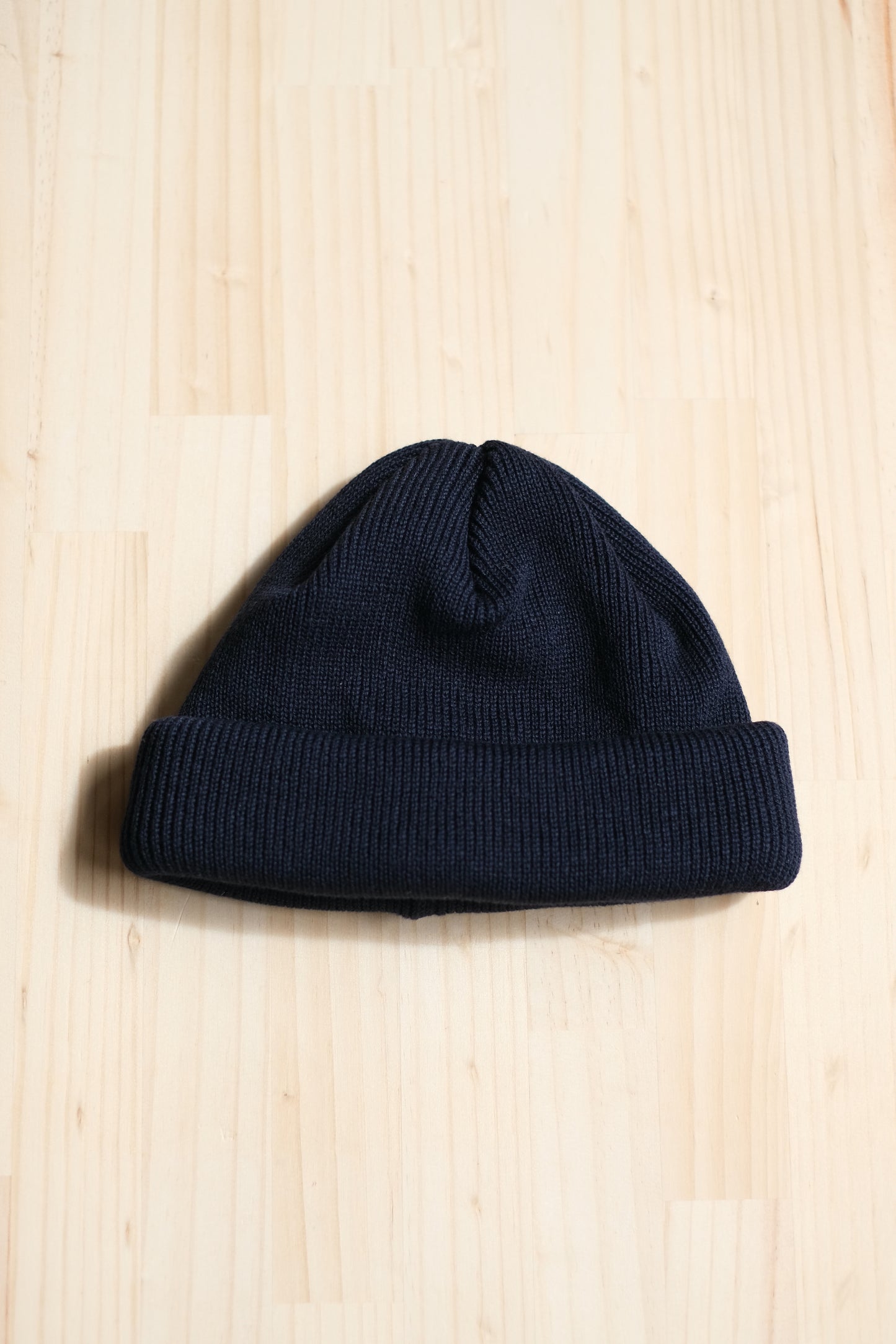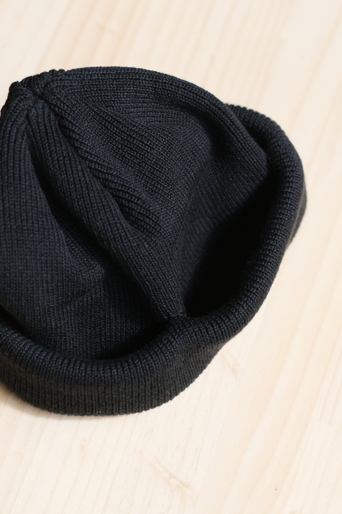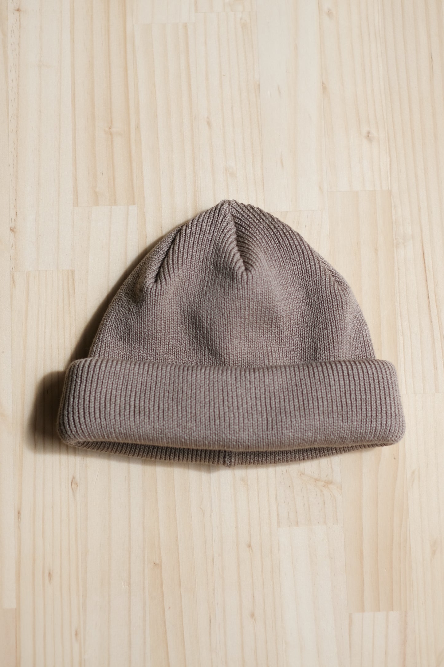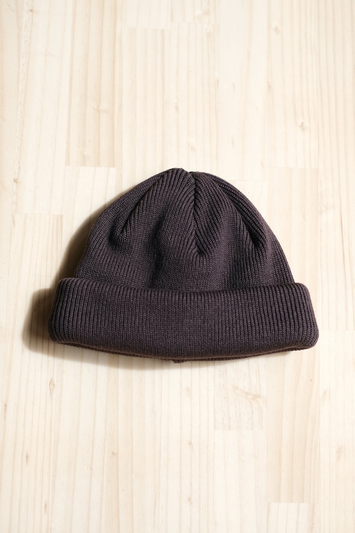 定番のロールニットキャップ。 通年使えるコットン/アクリルのややコシのあるニットです。ロール部分はしつけ糸で留められていますが、お好みでしつけ糸を切って着用もいただけます。