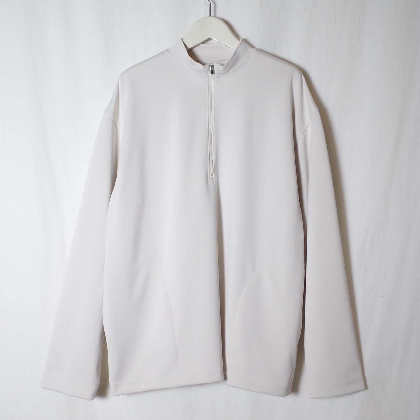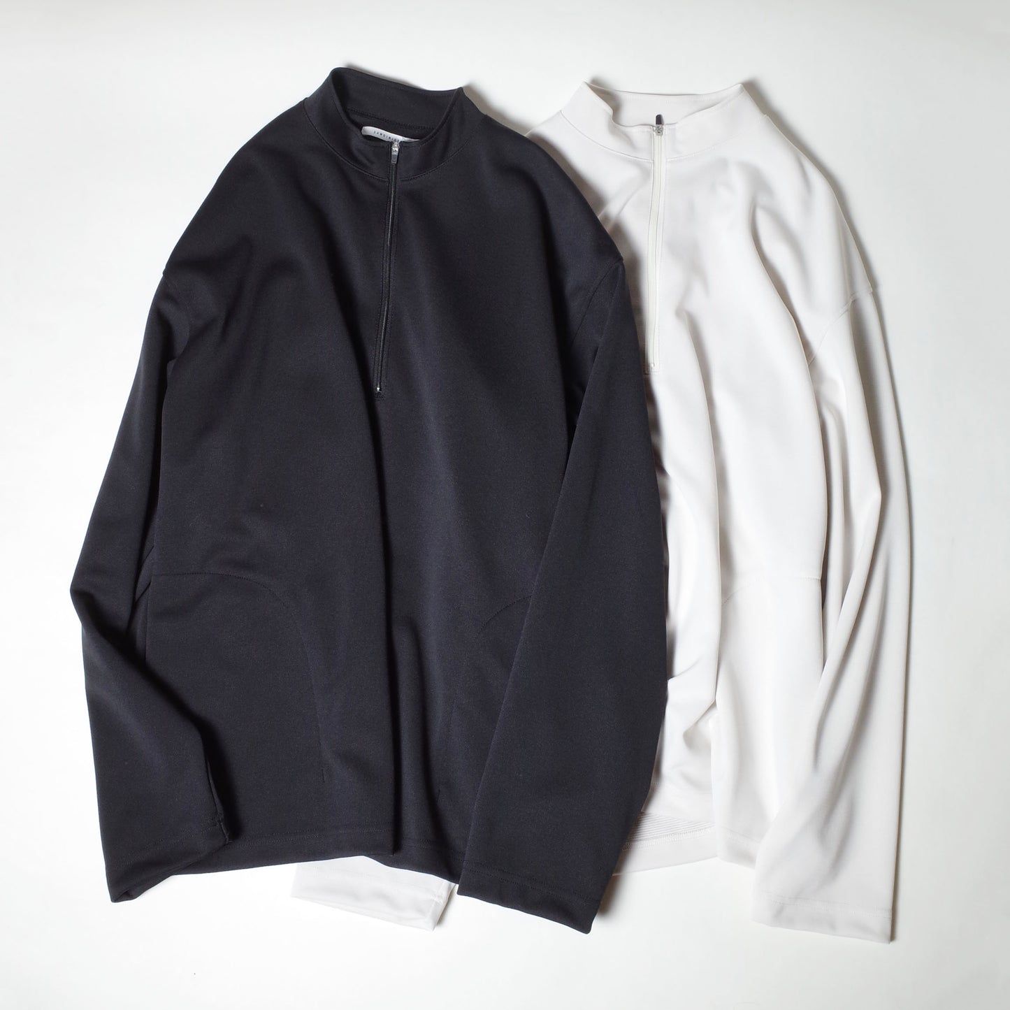 高機能素材TYWARM®(タクティウォーム)を使用した、かぶり仕様ハーフジップトップです。生地の特徴は太陽光の光エネルギーを吸収し、保温性(蓄熱保温)に優れたタクティウォーム®の糸を使用したポンチです。中肉厚でしなやかなストレッチ性とほどよくソフトな肌触りが特徴の素材です。