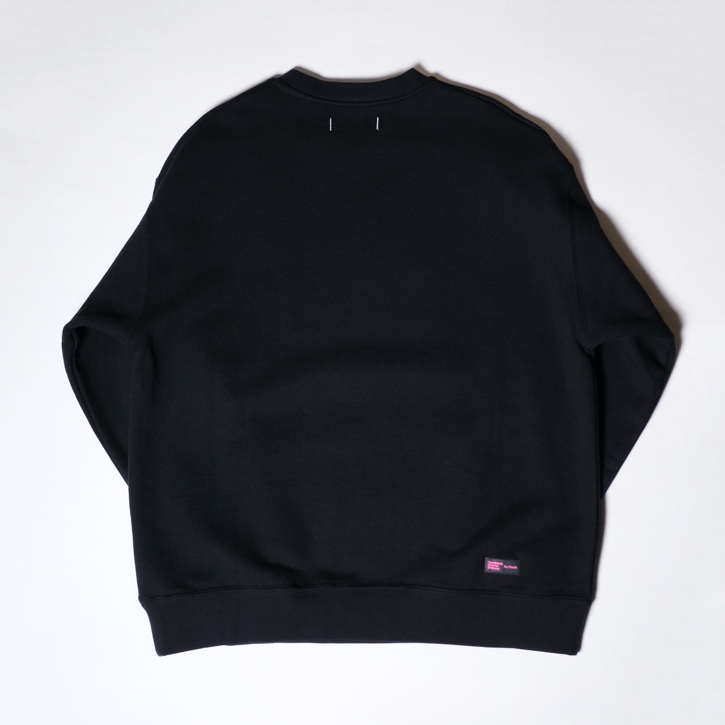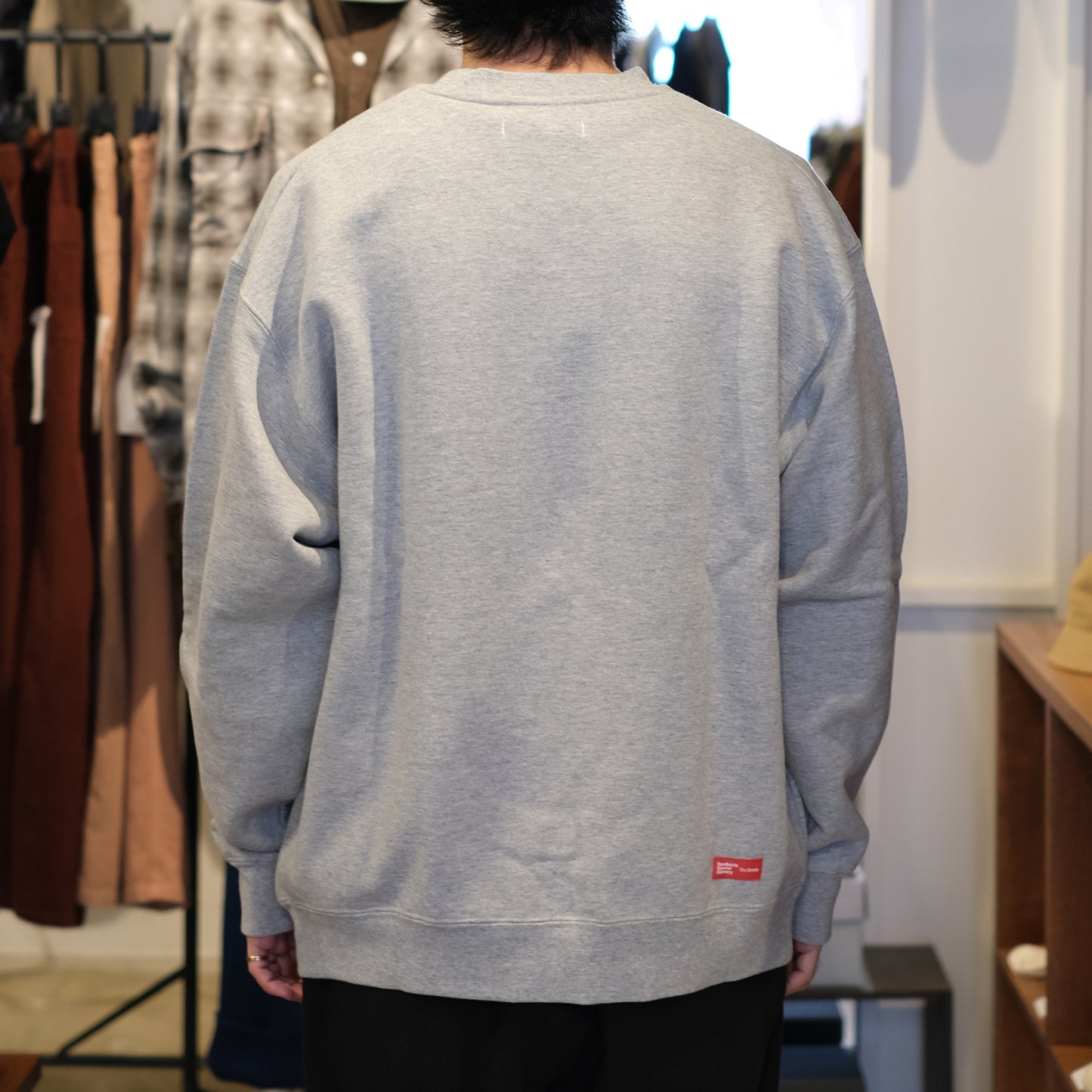 ローンチしたばかりの東京発プレーンボディーブランド"K n u u(ヌー)"を使用した、Sandinistaアーカイブグラフィックをプリントしたトレーナーです。ボディーの特徴は17.6(500g)オンス(26/26/8 引き揃え) のヘビー裏毛を使用しています。裏毛では珍しい表糸と繋ぎ糸には26番手の端番手で編むことにより、厚手でビンテージ感のある表情と風合いが特徴です。裏糸も8番手の端番手をあえて引き揃えて編むことにより、密度の詰まった独特なパイル形成となり、表面はハードな表情で裏のパイルはソフトで膨らみのある裏毛となっています。また洗う度に表情を変えていくことも楽しみとなる裏毛です。