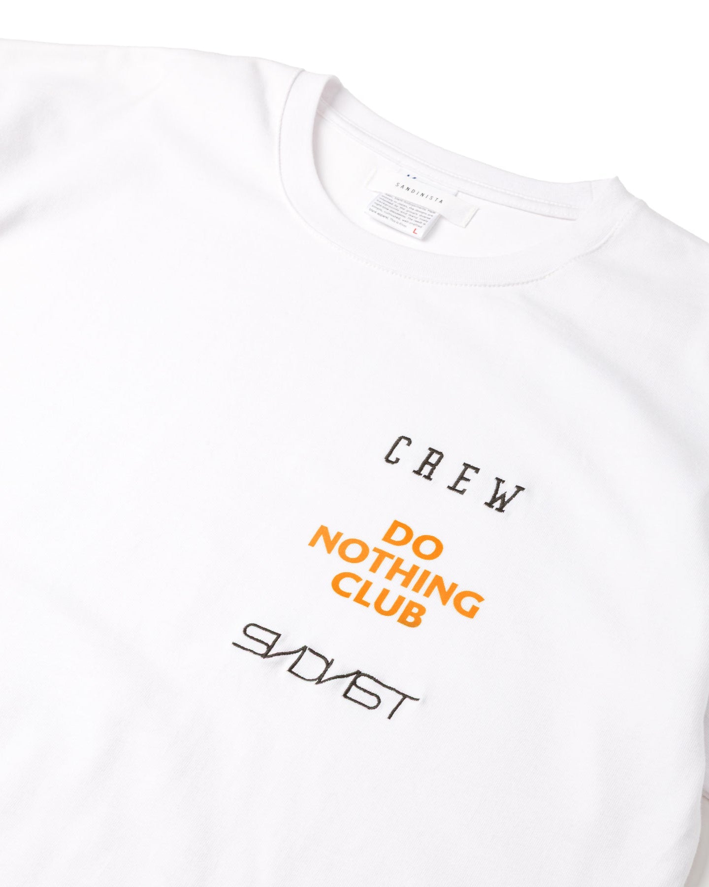 東京発プレーンボディーブランド"K n u u(ヌー)"を使用した、Sandinistaアーカイブグラフィックを刺繍&プリントしたTシャツです。ボディーの特徴は9.5(285g)オンス (26/2 双糸) のヘビー天竺を使用しています。天竺では珍しい26番手の端番手を双糸で編むことにより、厚手でビンテージ感のある表情と風合いがあり、更に斜行しにくいのが特徴です。