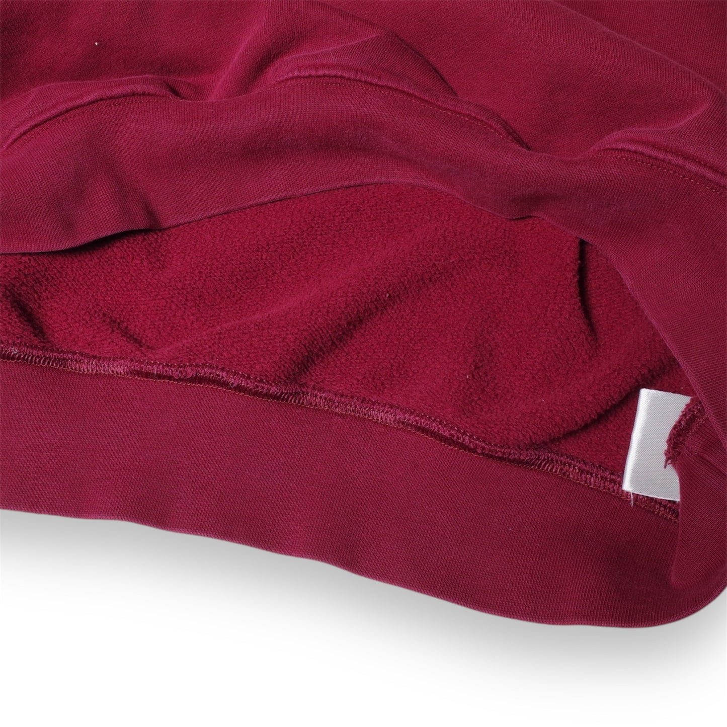胸元のワンポイント刺繍ロゴ、バーガンディーの渋めカラー。